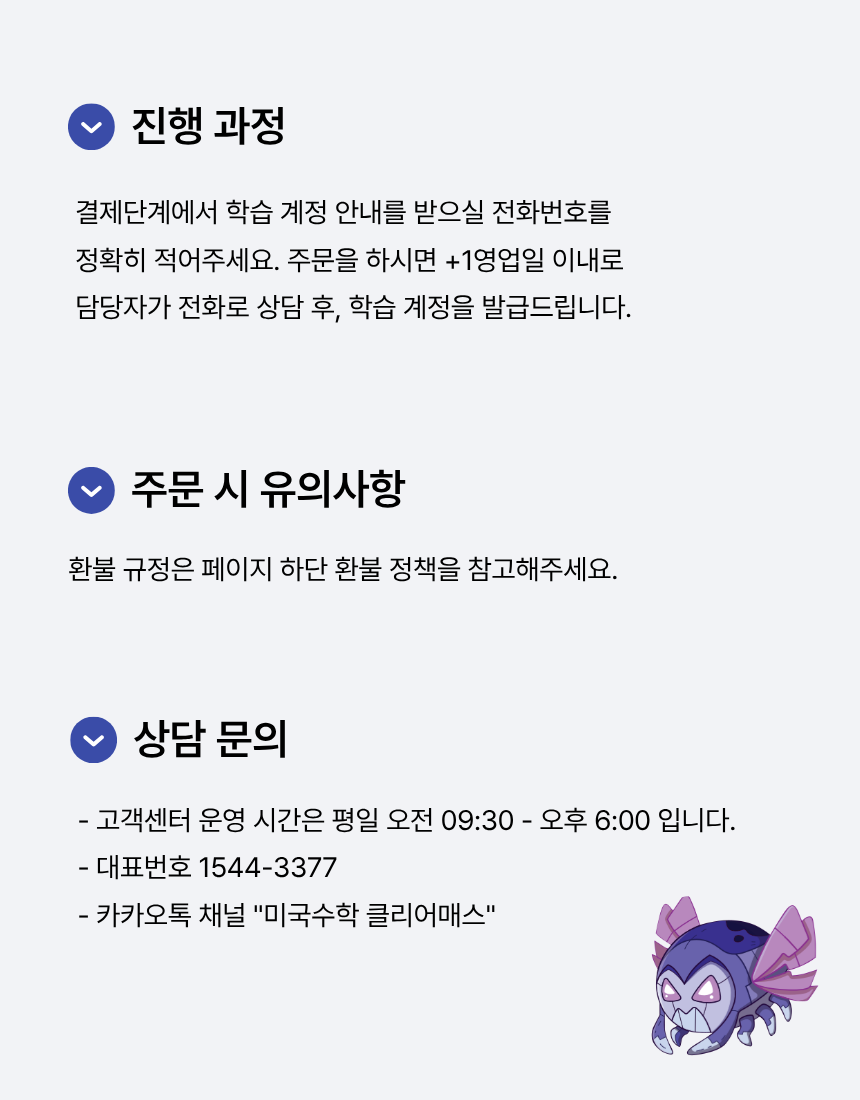 2. 구매확정 후 학습 계정(ID)을 부여한 시점부터 서비스를 이용한 것으로 간주하며, 전자출판물의 특성상 짧은 시간 안에 전체 자료 열람 등이 가능하므로 환불이 불가능합니다.