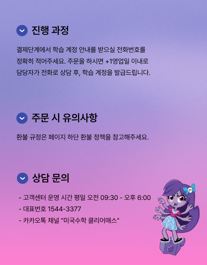 2. 구매확정 후 학습 계정(ID)을 부여한 시점부터 서비스를 이용한 것으로 간주하며, 전자출판물의 특성상 짧은 시간 안에 전체 자료 열람 등이 가능하므로 환불이 불가능합니다.