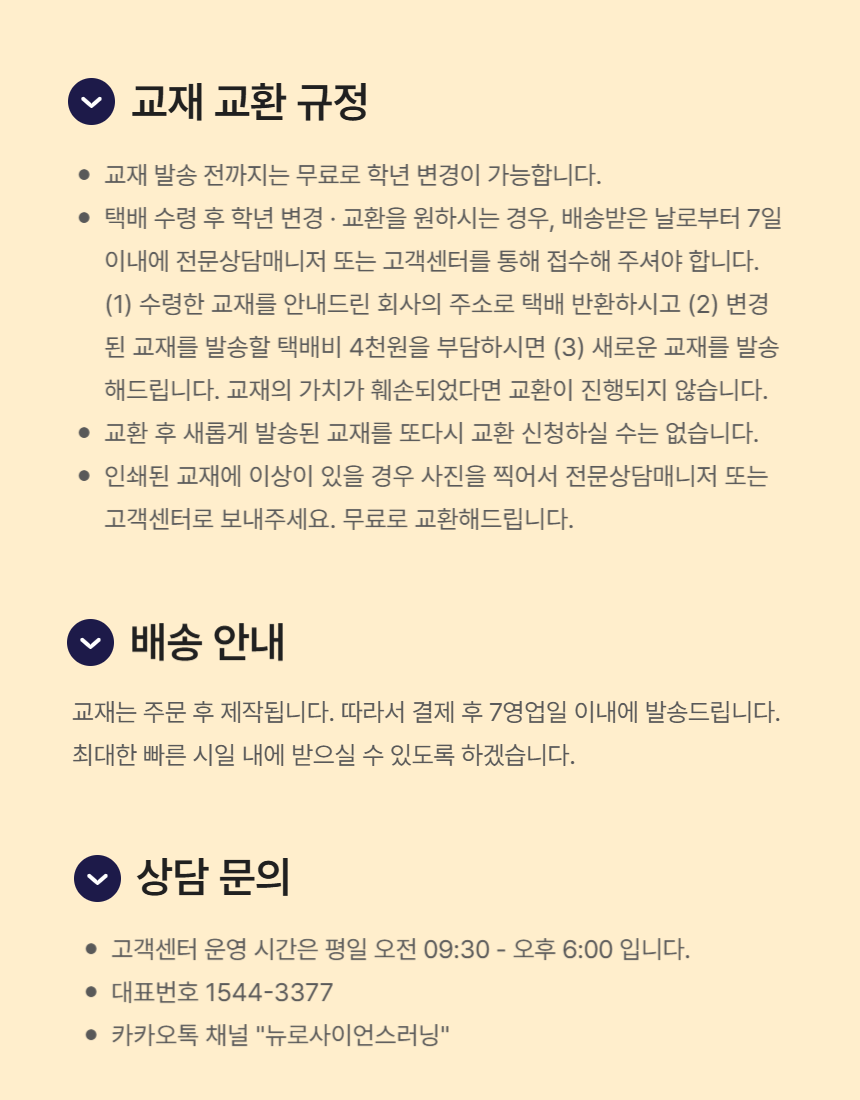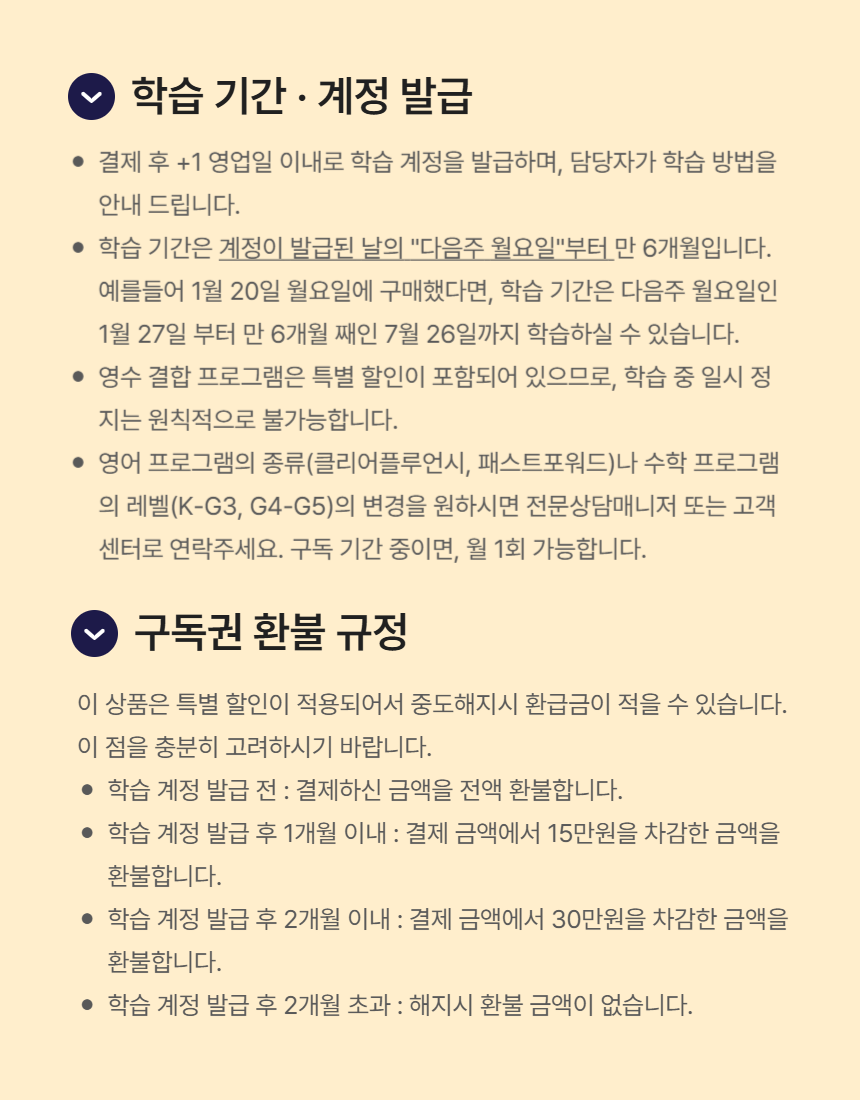 2. 학습 계정(ID)을 부여한 시점부터 서비스를 이용한 것으로 간주하며, 전자출판물의 특성상 짧은 시간 안에 전체 자료 열람 등이 가능하므로 환불이 불가능합니다.