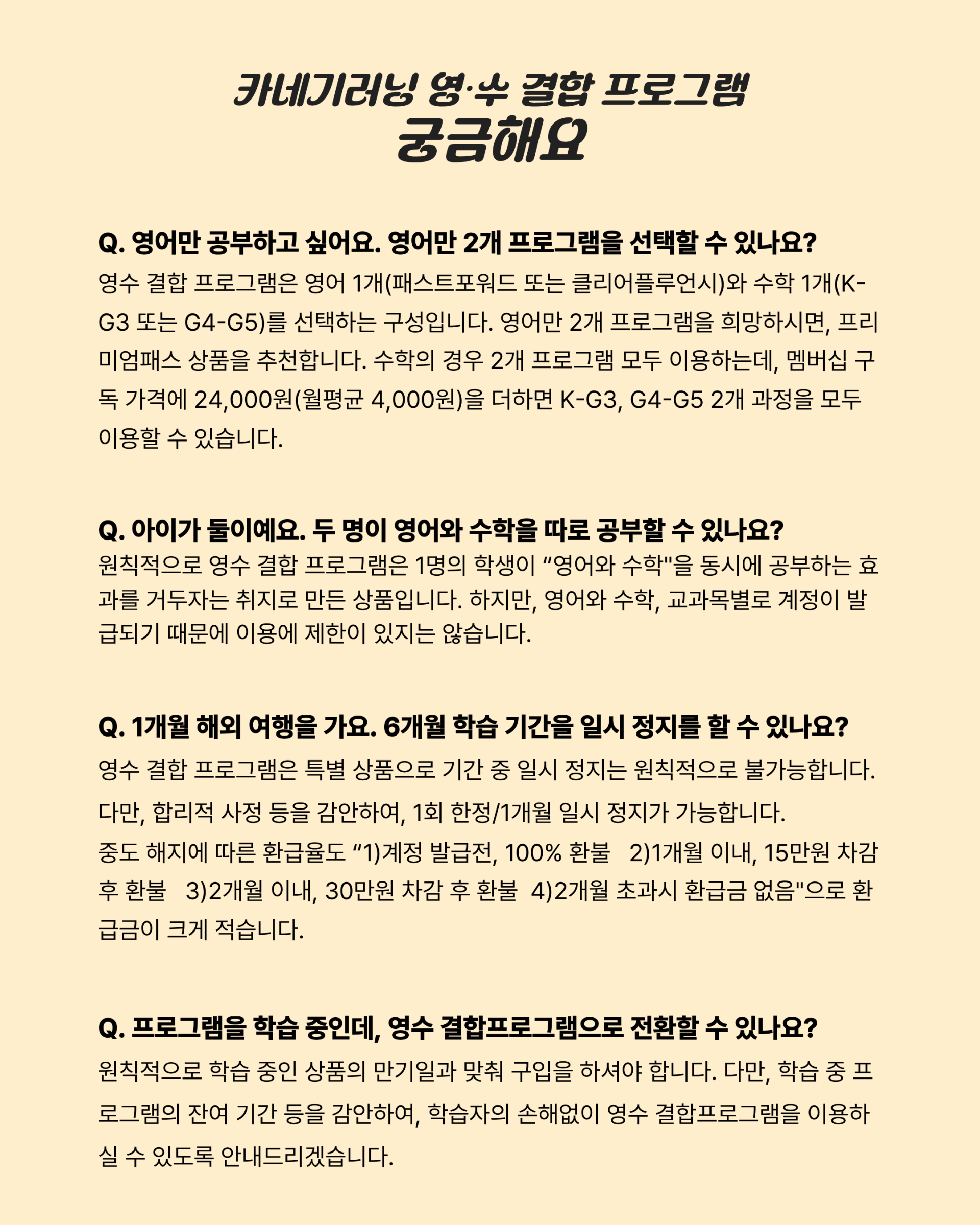 3. 사용자의 실수, 단순 변심, 개인적인 사유, 자료의 미비, 콘텐츠 내용의 오류(오답, 오타) 등은 환불 요청의 사유가 될 수 없습니다.